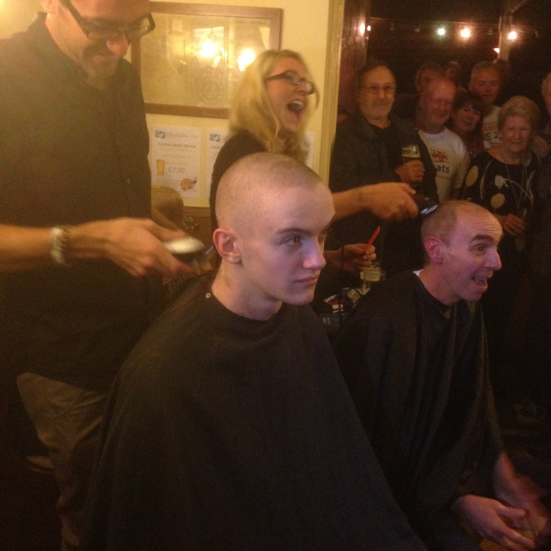 At 9.30 p.m. when the name of our semi finalists were known, play stopped for a short time to draw the raffle and watch the hair shaving. During the evening Clive and Julie went round the pub collecting more money for sponsorship for the two Matts and the amount collected will be announced as soon as there is a final total, which should be a significant amount. Both Matts should be very proud of what they have acheived and a huge thank you to them both, along with Shaun, Gareth & Stacey of E2 Hair for sponsoring the Hair Shave.